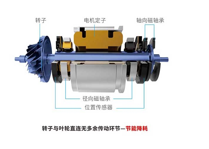 ◇ 采用主動磁力軸承系統,無磨損、無潤滑、無維護。