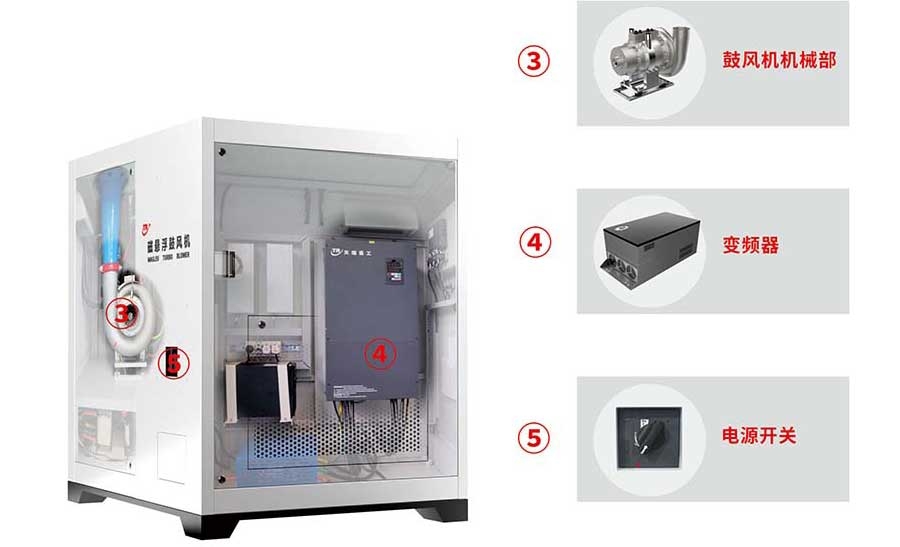 ◇ 磁浮鼓風機不需要潤滑系統,節省潤滑油和清潔成本